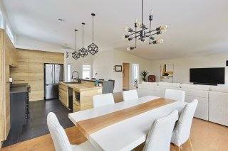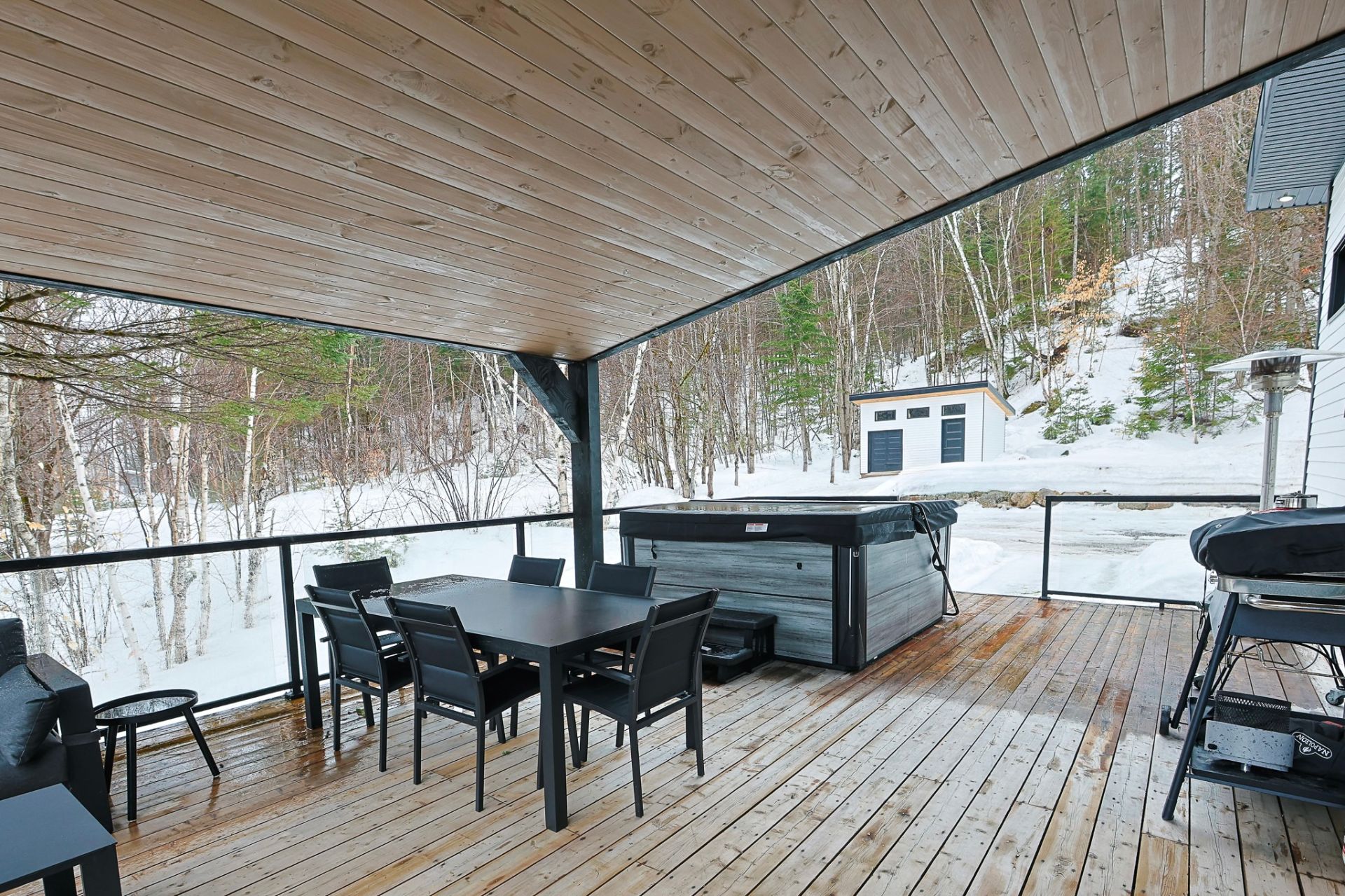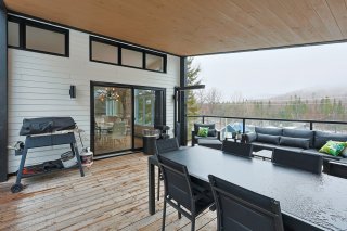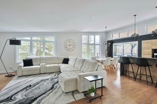 Inclus : Spa, tondeuse et souffleuse, Luminaires, habillages de fenêtres, aspirateur central et accessoires, thermopompe, tabourets de l'îlot, cabanon